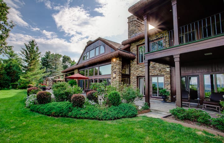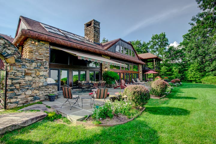 Este refugio de montaña único en Hendersonville, Carolina del Norte, está rodeado de impresionantes vistas a las montañas, senderos para caminar, estanques de pesca, zoológico de mascotas, putting green, cancha de tenis, cancha de baloncesto, un pozo de herradura, tetherball, sala de ejercicios, área de picnic cubierta, una chimenea para disfrutar de lo mejor de la naturaleza con familiares y amigos, y una gran bañera de hidromasaje (disponible del 1 de junio al 31 de octubre) con vistas a las majestuosas vistas. Un cuidador en el lugar también es uno de los muchos beneficios de alquilar esta finca vacacional de Hendersonville.