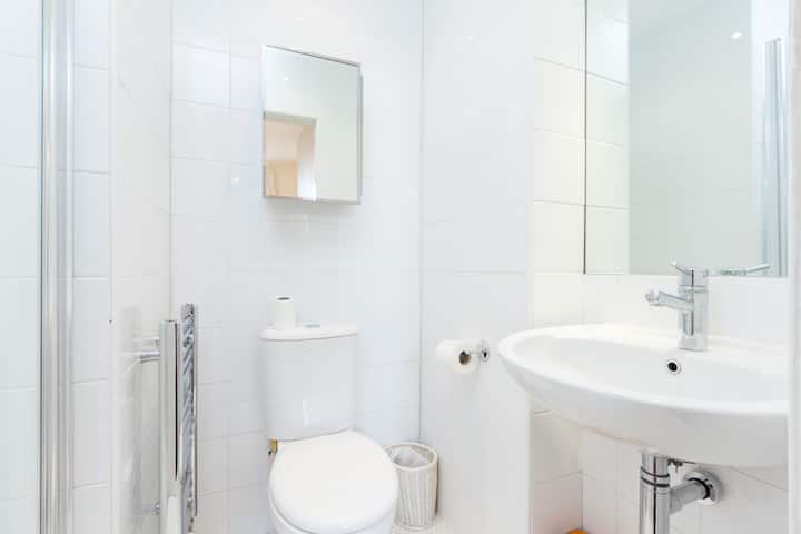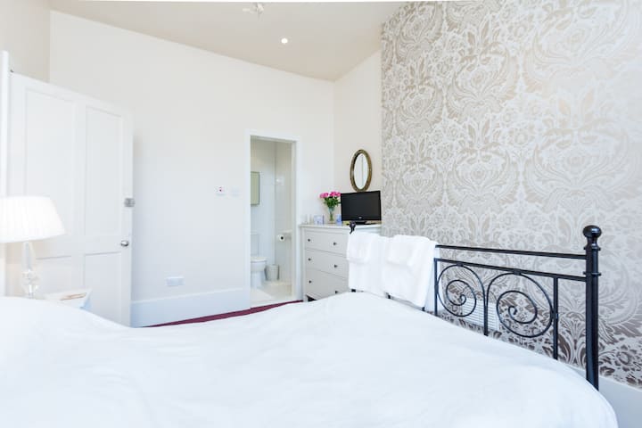 Acogedora y elegante cama doble y baño privado