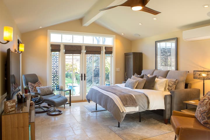 Este estudio ejecutivo es una unidad independiente de nueva construcción en el encantador Willow Glen, a poca distancia a pie del corazón de la ciudad, Lincoln Avenue. Diseñado y equipado para viajeros de negocios, turistas y familiares que valoran estar en casa mientras están fuera con una experiencia de hotel boutique de 5 estrellas. Acabados, muebles y servicios de alta gama.