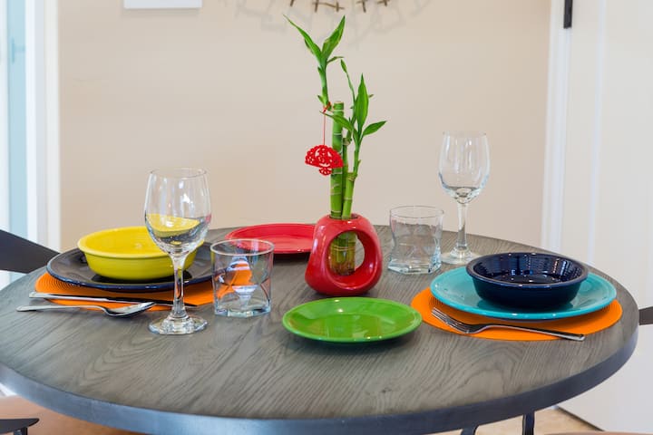 Electrodomésticos contemporáneos. Incluye lavavajillas Miele, estufa/horno de gas, microondas; utensilios de cocina, vajilla, tostadora, cafetera, tetera, espumador de leche... ¡mucho más (¿te gusta hornear?)! Todo es nuevo, no falta nada y, si falta algo, ¡avísame!