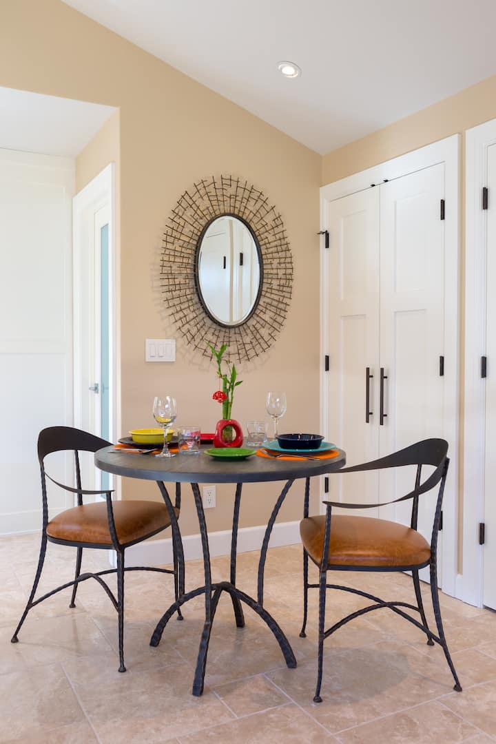 Si te gusta cocinar, se incluye una cocina gourmet con estufa/horno de gas y todos los electrodomésticos con los que puedas soñar. Incluso tienes un patio privado con ducha exterior y vistas al patio trasero de la casa principal desde puertas francesas independientes y ventana frontal.