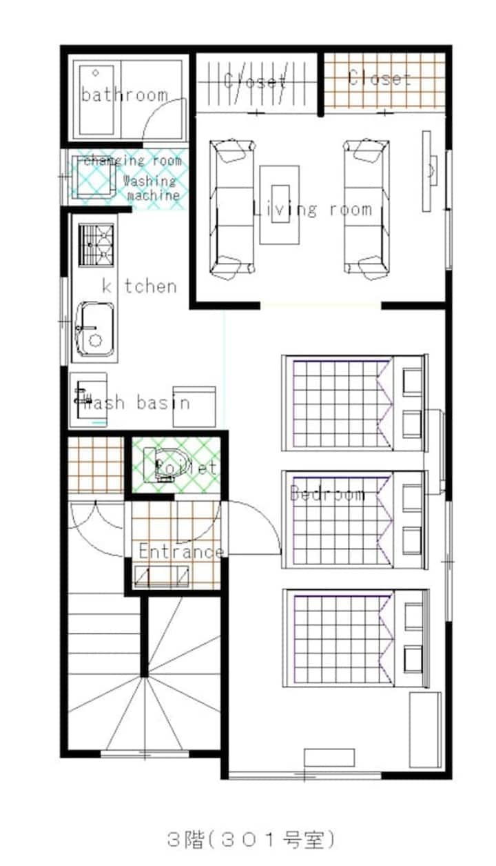 3F 48 ! 8 personas pueden pasar la noche.A unos 6 minutos a pie de la salida 1 de la estación Underground Rail Palace Sawa, a unos 6 minutos.