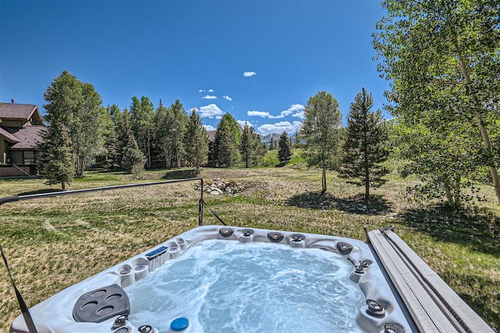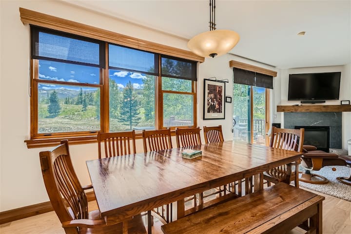Highland Greens Spruce: ¡un refugio para todas las estaciones! Descubre el refugio de montaña perfecto en Highland Greens Spruce, estratégicamente situado entre Breckenridge y Frisco. Esta exquisita casa invita a varias familias o grupos a deleitarse con el encanto de las Montañas Rocosas de Colorado. Al entrar, la calidez de la espaciosa sala de estar te da la bienvenida, adornada con TV de pantalla plana, chimenea de gas y vistas cautivadoras de la zona de esquí y las montañas circundantes. El nivel principal también tiene un medio baño para mayor comodidad. En invierno, el campo de golf, ubicado al otro lado de la calle, se transforma en el Centro Nórdico Gold Run, que ofrece una extensa red de senderos de esquí de fondo y raquetas de nieve a la vuelta de la esquina. ¡La proximidad a la ciudad, la telecabina y varias actividades al aire libre hacen de esta ubicación un paraíso invernal! Durante el verano, explora las rutas de senderismo y ciclismo cercanas, o disfruta de una ronda de golf en el campo de golf adyacente Jack Nicklaus de 27 hoyos. Highland Greens Spruce tiene capacidad para 9 personas cómodamente. La suite principal con cama tamaño king en el nivel superior cuenta con un baño privado de 5 piezas, que le da un toque de lujo. El segundo dormitorio ofrece una cama tamaño queen con encantadoras vistas a la zona de esquí y un baño completo compartido. El tercer dormitorio presenta una disposición flexible con una litera doble sobre queen y una litera adicional doble sobre doble, vistas a la zona de esquí y otro baño completo compartido. El área del loft ofrece espacio adicional con un tercer televisor para mayor entretenimiento, equipado con Roku y acceso a Smart TV. A medida que el día se convierte en noche, sube a la terraza para sumergirte en los impresionantes alrededores o disfruta del jacuzzi privado, que ofrece relajación bajo el cielo iluminado por las estrellas. La cocina bien equipada y el comedor independiente, con capacidad para 10 personas, satisfacen tus deseos culinarios. El amplio patio trasero invita a jugar al aire libre, por lo que es un espacio ideal para que los niños se diviertan o disfruten de un poco de trineo. Experimente el epítome de la vida en la montaña en Highland Greens Spruce, donde cada estación trae su propio encanto y cada momento se convierte en un recuerdo preciado. ¡Reserva tu estancia y emprende un viaje inolvidable en el corazón de las Montañas Rocosas de Colorado!