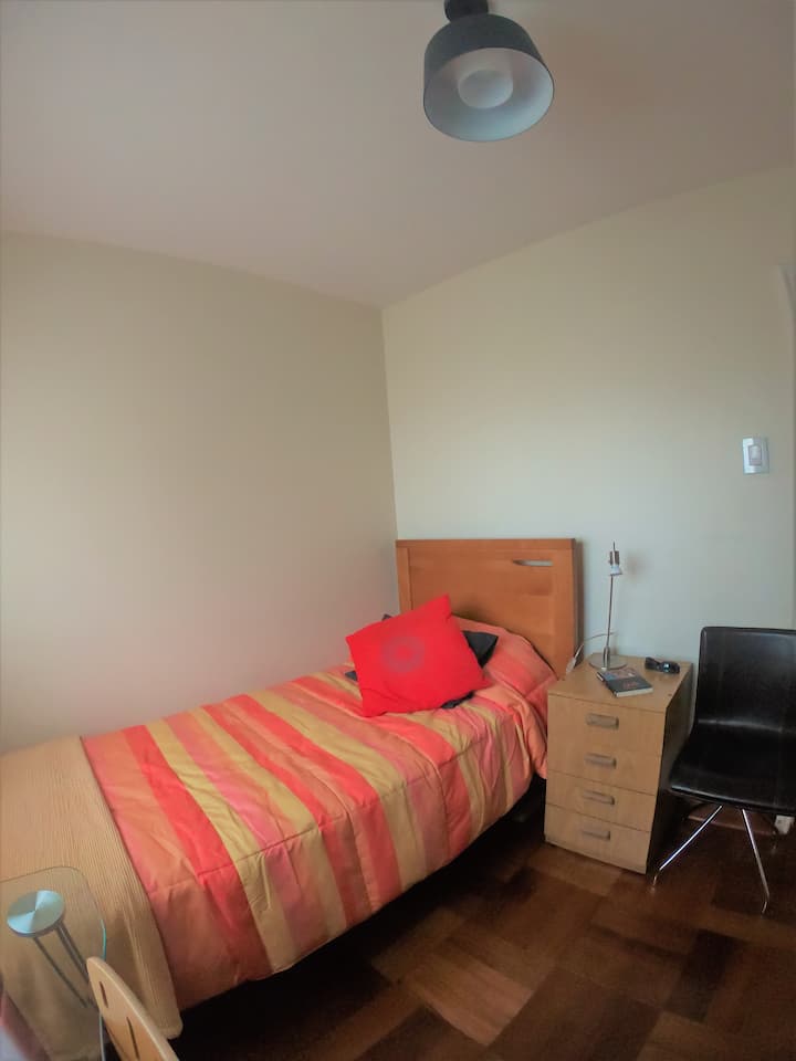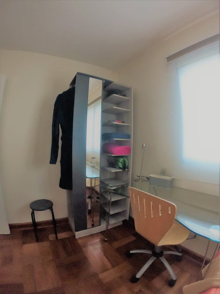 Una habitación solo para ti en un alojamiento, con acceso a áreas compartidas.