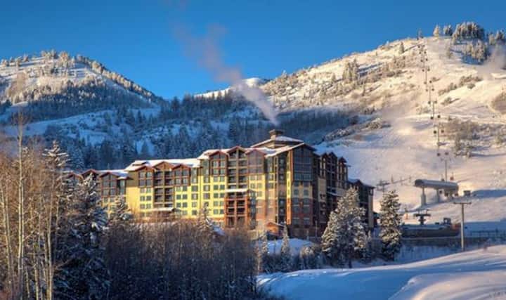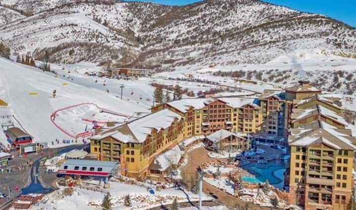 El alojamiento en el Grand Summit Resort Hotel es realmente el acceso más cercano al esquí/snowboard dentro de Canyons Village (incluido el reloj de sol y Westgate) del Orange Bubble Express, el telesilla cuádruple de alta velocidad de Park City con asientos climatizados. Esta unidad de hotel del cuarto piso se encuentra en una ubicación única junto a la ladera, que ofrece impresionantes vistas al balcón de la montaña, la góndola Red Pine y el centro de Canyons Village.