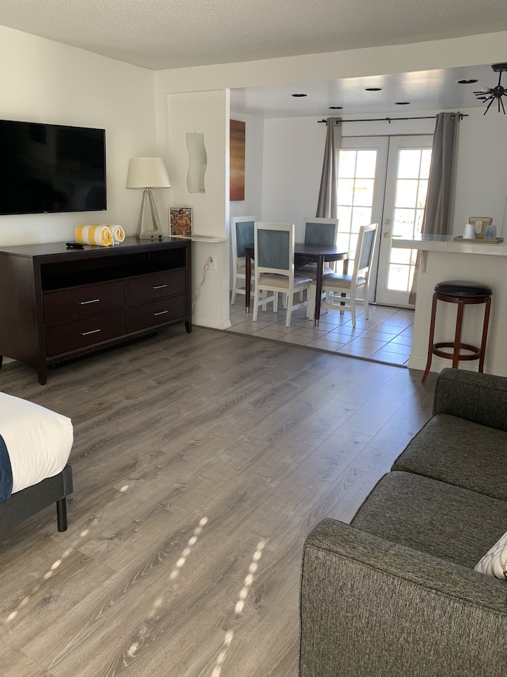 Ubicadas en N Palm Canyon Dr., Mykonos Desert Suites está a pocos minutos del entretenimiento del centro de Palm Springs. 41 habitaciones decoradas individualmente, con comodidades de primer nivel, cómodas camas, cocinas bien equipadas y baños privados. majestuosas vistas a la montaña, 2 piscinas, jacuzzi, putting green, jardín zen, aparcamiento gratuito en el lugar, wifi de cortesía, televisores Roku con Hulu incluidos.