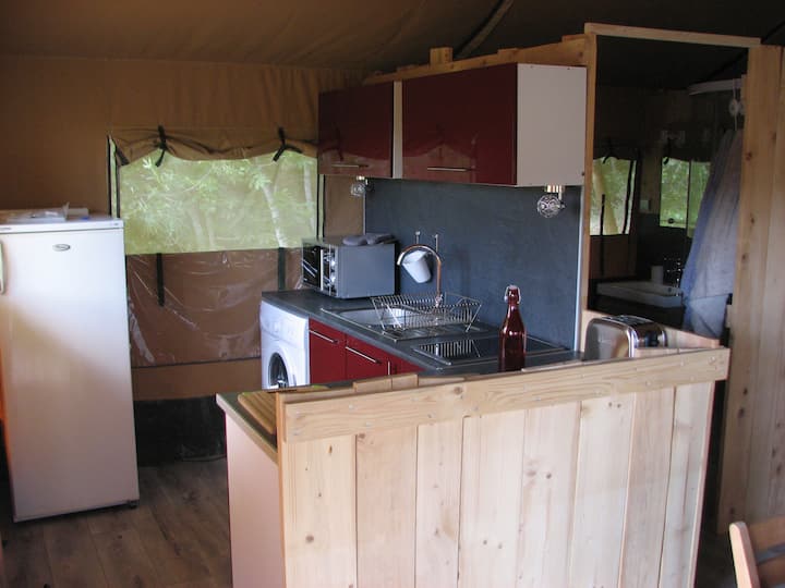 Tienda de campaña en Chirols, Francia
