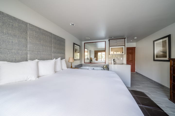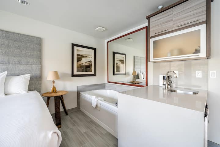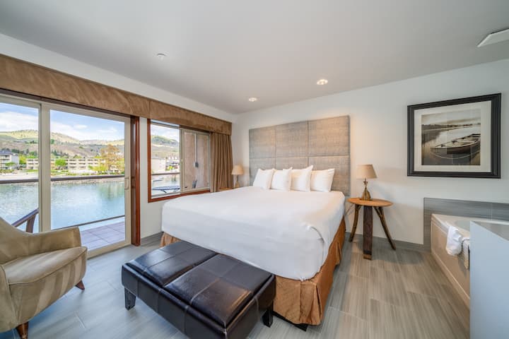Grandview #721: disfruta de una escapada romántica en una habitación King Suite. Acurrúcate frente al fuego, disfruta de la vista en tu balcón privado o relájate en la bañera de hidromasaje construida para dos. Esta habitación cuenta con una cama tamaño king, una cómoda silla, un bar y vista al río.