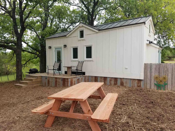 Minicasa en una granja de un rancho en activo en Texas
