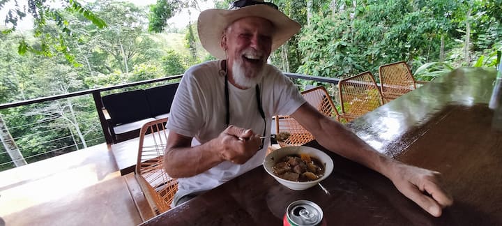 Nacido y criado en California, en el buen viejo EE. UU. Crecí rodeado de grandes familiares y amigos y viví el estilo de vida típico de California. Me encanta estar al aire libre y experimentar la naturaleza y es por eso que me mudé a Costa Rica en 2009. Estaba buscando una nueva aventura y el chico lo encontré. Vivir el estilo de vida de Pura Vida en Costa Rica cambió mi vida para siempre. Me abrumó mucho la diversidad del medio ambiente, la vida silvestre, las impresionantes vistas, las infinitas actividades al aire libre, el gran clima y la gente amable. Todo lo cual me llevó a mi próxima gran aventura.....Parenthood. Conocí el amor de mi vida y ahora tengo dos hijos maravillosos. Juntos, recibimos huéspedes que buscan diversión, relajación y una pequeña aventura aquí en nuestra pequeña porción del cielo. Al igual que muchos otros dueños de negocios en Costa Rica, el Covid nos afectó mucho. Nuestro bed and breakfast original, "Casa Cielo Volcano View Retreat", estaba prosperando, pero después de que el gobierno costarricense cerrara el país a los extranjeros, nos vimos obligados a cerrar en 2020. Tuvimos la suerte de vender la propiedad y mudarnos a nuestro proyecto de reforestación de teca cercano. Así que después de dos años y medio de construcción y reconstrucción, ¡VOLVEMOS! Estamos empezando un nuevo capítulo en nuestras vidas con nuestro nuevo alquiler vacacional "Casa Cielo Jungle" en Cielo Ranch Reserve. Más grande y mejor que el original. Todo está disponible aquí para los amantes del aire libre. Excelente senderismo, observación de aves, ciclismo de montaña, rafting en aguas bravas, tirolinas, wakeboard, paseos a caballo, kayak, aguas termales naturales y toda la naturaleza y la vida silvestre y sonrisas amistosas por las que Costa Rica es famosa. Realmente es nuestro pequeño pedazo de paraíso que nos encanta compartir con nuestros huéspedes. Puedes esperar alojamientos limpios, buena compañía, experiencias memorables únicas, excelentes vistas y un increíble café y fruta frescos por la mañana. Nuestro objetivo es ofrecerte todo lo que necesitas para tener una gran experiencia vacacional. Todo depende del huésped y de sus necesidades. Independientemente de lo que desees hacer y experimentar, podemos mostrarte cómo y dónde hacerlo. Como dicen aquí, "Cualquier cosa es posible en Costa Rica".