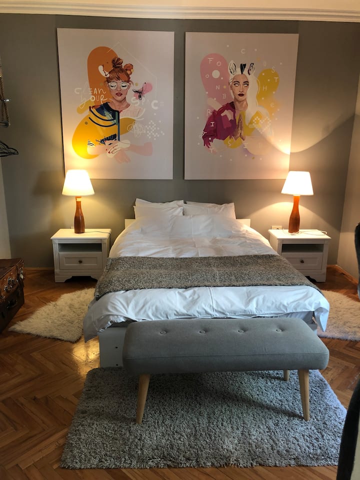 Toda mi vida trabajé como azafata y viajaba por todo el mundo. Con esa experiencia creo que puedo suponer las necesidades y hábitos del viajero. Con todo eso e incluyendo mi pasión por el arte, hicimos de este departamento un dulce lugar artístico inspirado en la película "Buscando a Vivian Mayer", que es mi favorita.