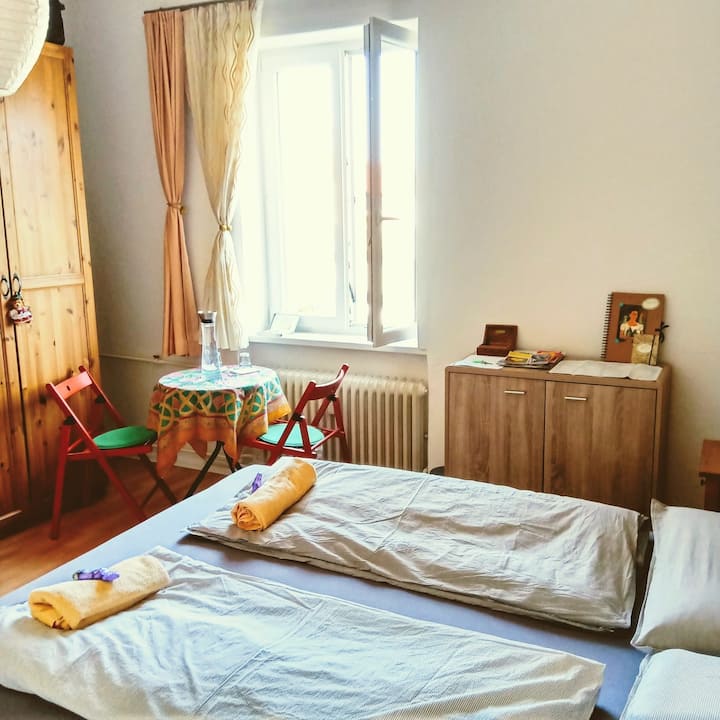 Una habitación solo para ti en un alojamiento, con acceso a áreas compartidas.