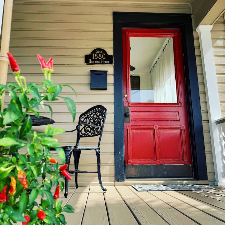 ¡Bienvenido! Mi esposo y yo somos nuevos en hospedar y decidimos comprar esta casa emblemática (The Hawkins House, alrededor de 1880) para compartir un poco de nuestra rica historia local, y todo lo que la hermosa zona costera de Pensacola tiene para ofrecerte a ti y a tu familia. Esta casa estaba recientemente a la venta, ¡y nos enamoramos de ella desde el momento en que entramos por la puerta roja! Hemos decorado con amor la casa con un cálido mobiliario contemporáneo que es fresco, acogedor y hermoso.