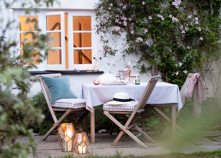 Acogedora y romántica casa de campo con techo de paja en un pueblo idílico