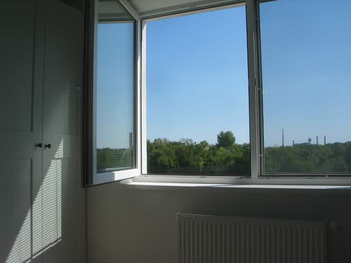 Departamento soleado en una ubicación tranquila, estacionamiento, aire acondicionado.