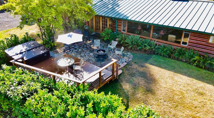 Auténtica casa de troncos con jacuzzi, vistas y garaje para juegos