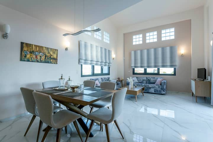Esta impresionante propiedad en un lote de2000 m ² tiene vistas panorámicas excepcionales e ininterrumpidas de los Malevizi y el mar de Creta. Esta ubicación única con una impresionante vista del mar rodeada por el hermoso paisaje natural de Creta, te dará la sensación de libertad. Incluso puedes creer durante unos minutos que estás flotando sobre el ajetreo de la isla.