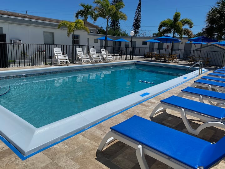 Estamos convenientemente ubicados a 5 minutos de la playa y a 3 cuadras del centro de la ciudad, donde encontrarás una amplia variedad de restaurantes, supermercados y tiendas. También estamos a 15 minutos del Aeropuerto Internacional de Fort Lauderdale y a 15 minutos de Port Everglades.