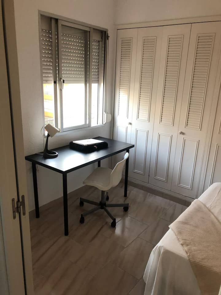 Una habitación con wifi apta para trabajar.