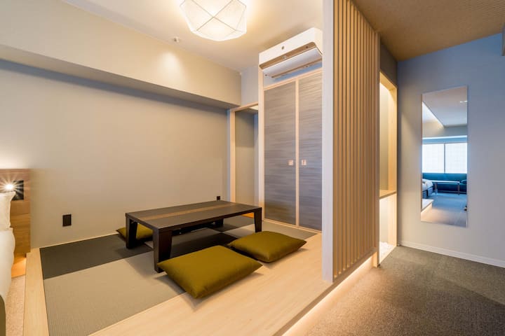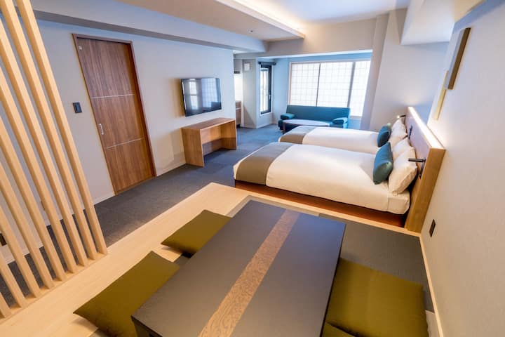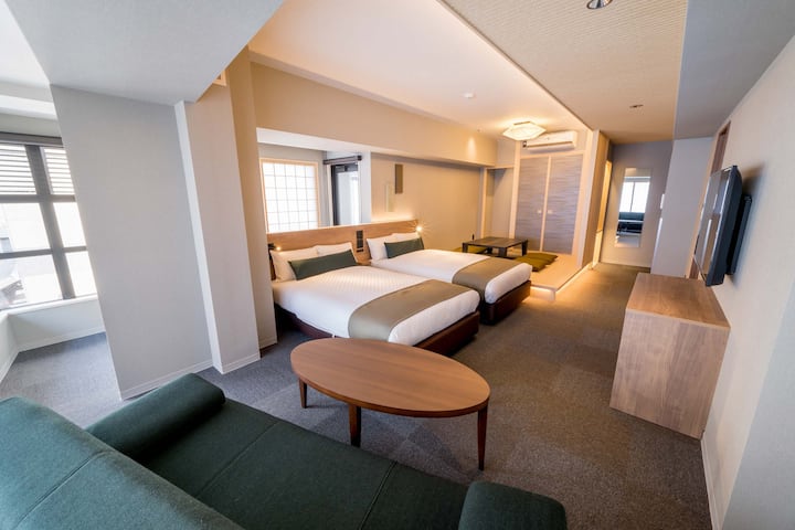 Amplia habitación japonesa-occidental para 5 personas.