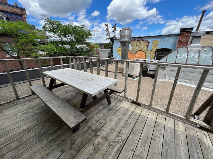 - Renta de alojamientos vacacionales con área de asientos al aire libre en Isla de Montreal