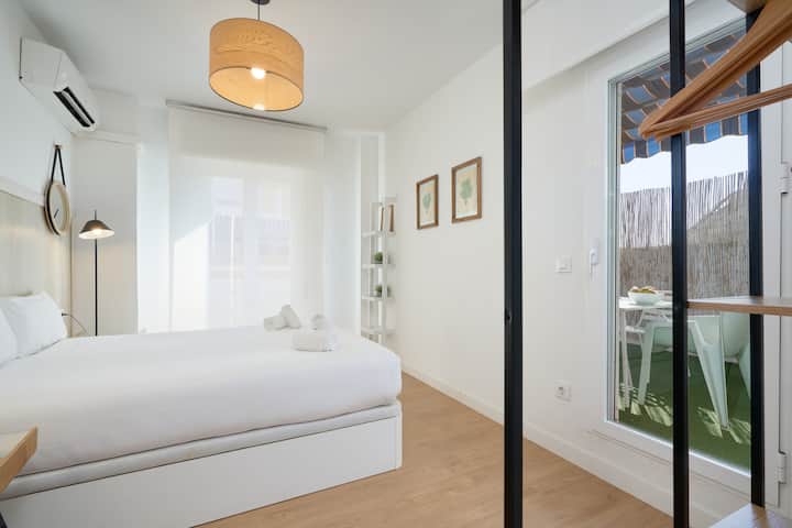 Apt. con terraza y parking gratis, cerca de todo