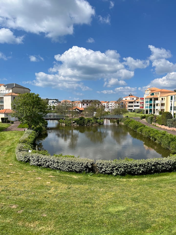 Estoy encantada de recibirle en mi acogedor apartamento situado en un hermoso entorno, entre el bosque y el mar, cerca de un lago.
