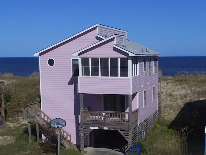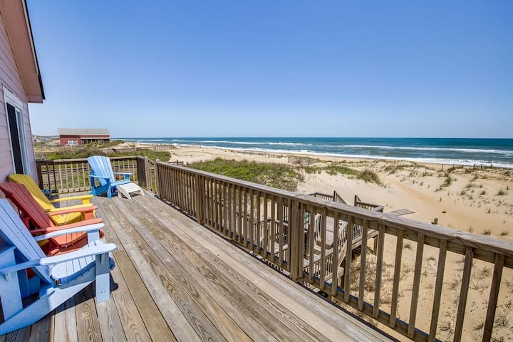 ¡Hola! Esta es Next To Sea, una preciosa casa de playa de Outerbanks frente al mar con amplias vistas al océano y al canal. Diseñada pensando en la comodidad óptima de los huéspedes y cargada de «extras».