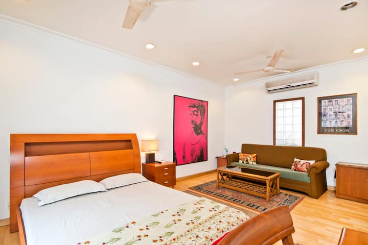 - Renta de alojamientos vacacionales con área de asientos al aire libre en Nueva Delhi