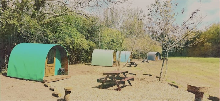 Bienvenido a Battle Pods & Bells: una colección de cápsulas para acampar y tiendas de campaña bellamente equipadas en el corazón del campo 1066, un oasis fuera de la red de glamping en Sussex. Quédate con nosotros y tu jardín trasero se desplegará en 460 acres de ciclismo boscoso, montar y caminar (perros bienvenidos), y la histórica ciudad de Battle estará justo a la vuelta de la esquina. La estación de tren está a solo unos minutos de nosotros y a solo 75 minutos de Londres. Estarás a pocos pasos de 6 pubs que sirven excelente comida, varias comidas para llevar (que pueden entregar) y una microcervecería galardonada. Así que únete a nosotros, desconecta y cuenta todas esas bendiciones.