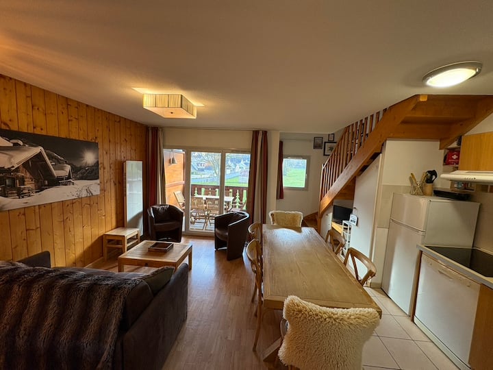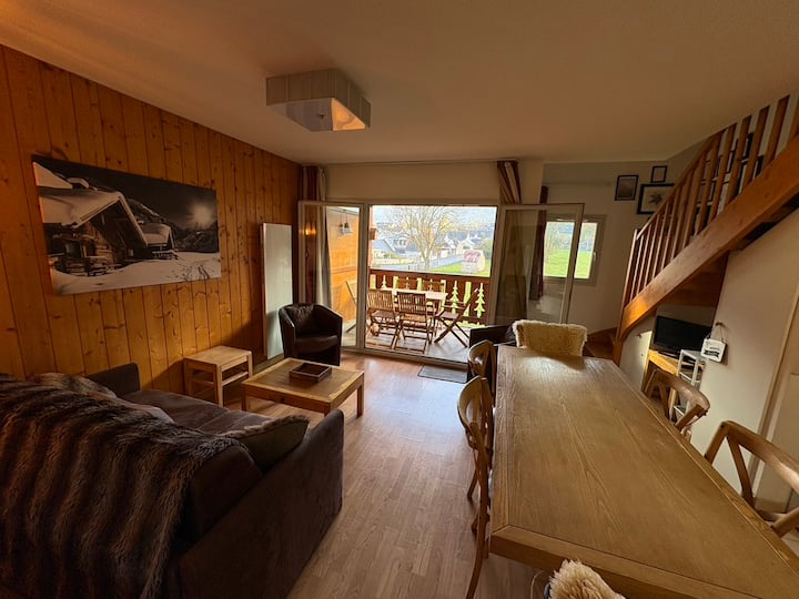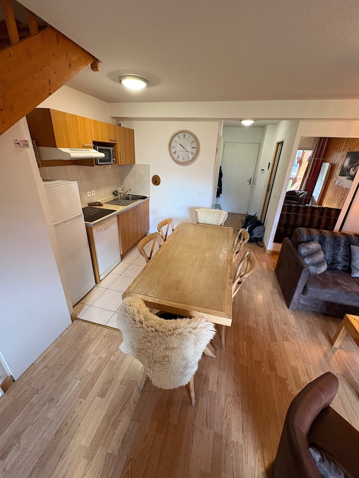 Apartamento dúplex, 8 personas, tranquilo y moderno, en el centro de Luz St. Salvador. Hermosas vistas de las montañas, rodeado de áreas de esquí (Luz Ardiden, Barège, Mongie, Gavarnie). Acceso a bonitos senderismo y actividades para toda la familia.