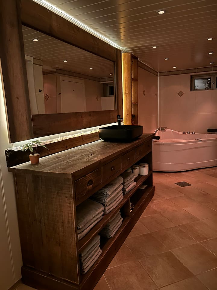 Gran y espaciosa cabaña con gran área al aire libre
