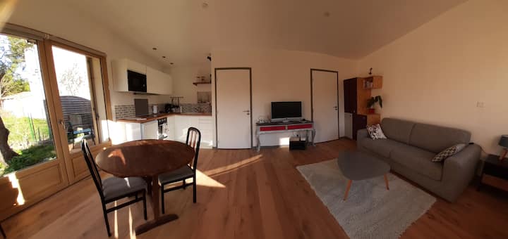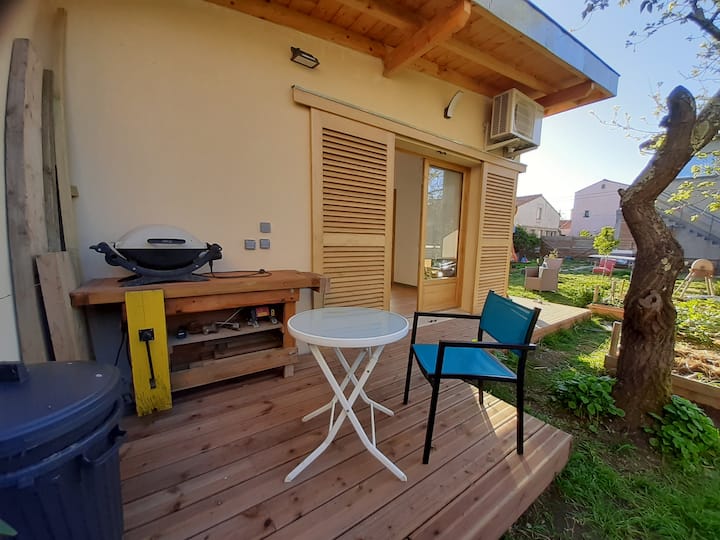 Acogedora casa de huéspedes en jardín compartido