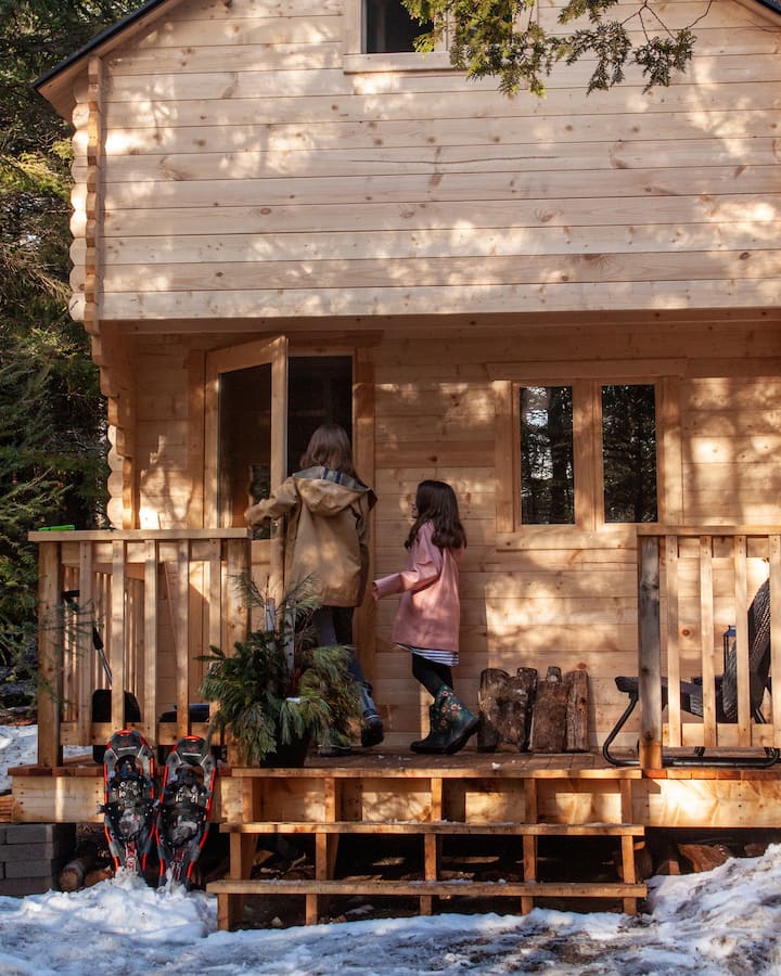 ¡Bonjour! ¡Hola! ¡Aaniin! ¡Me llamo Tasha Robitaille y con mi pareja, Cory Belcourt y nuestras dos hermosas chicas, hemos construido un refugio mágico en el bosque! Como muchos otros, hemos pasado por muchos cambios durante esta pandemia global y no hemos podido pensar en nada mejor que construir un lugar donde la gente pueda encontrar libertad en el bosque.