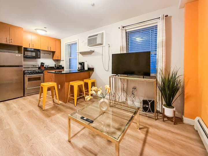 Este apartamento de 1 dormitorio cuidadosamente diseñado ofrece comodidad y conveniencia justo en el corazón del barrio Fenway de Boston. Sin escaleras para acceder, es una base fácil y segura en la planta baja, perfecta para estadías médicas, fanáticos de los deportes y exploradores de la ciudad.