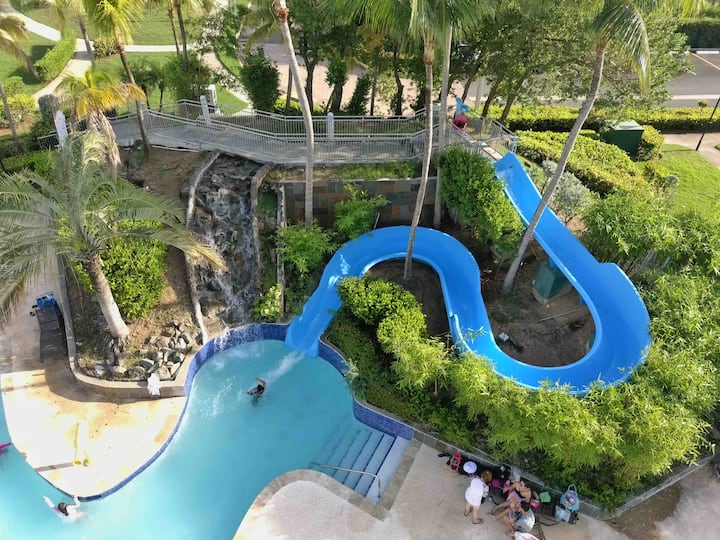 Hospédate en un penthouse recién renovado en Aquatika, un complejo residencial estilo resort frente a la playa, con 5 piscinas, río tipo “lazy river” y acceso directo a la playa. Ideal para familias o para una escapada relajante.