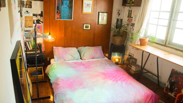 Una habitación solo para ti en un alojamiento, con acceso a áreas compartidas.