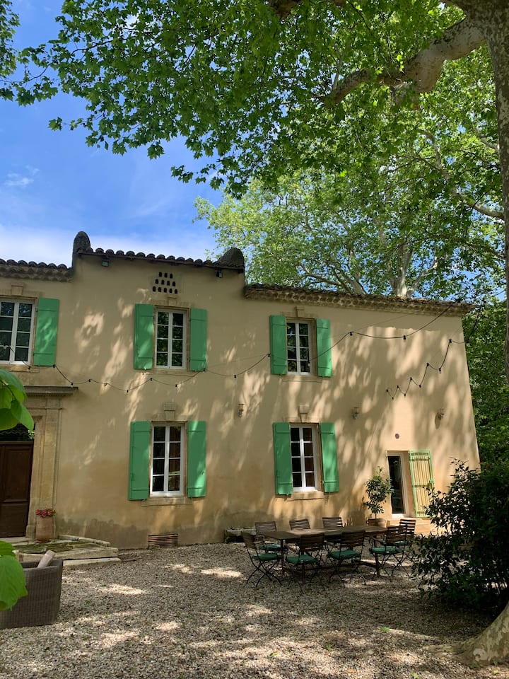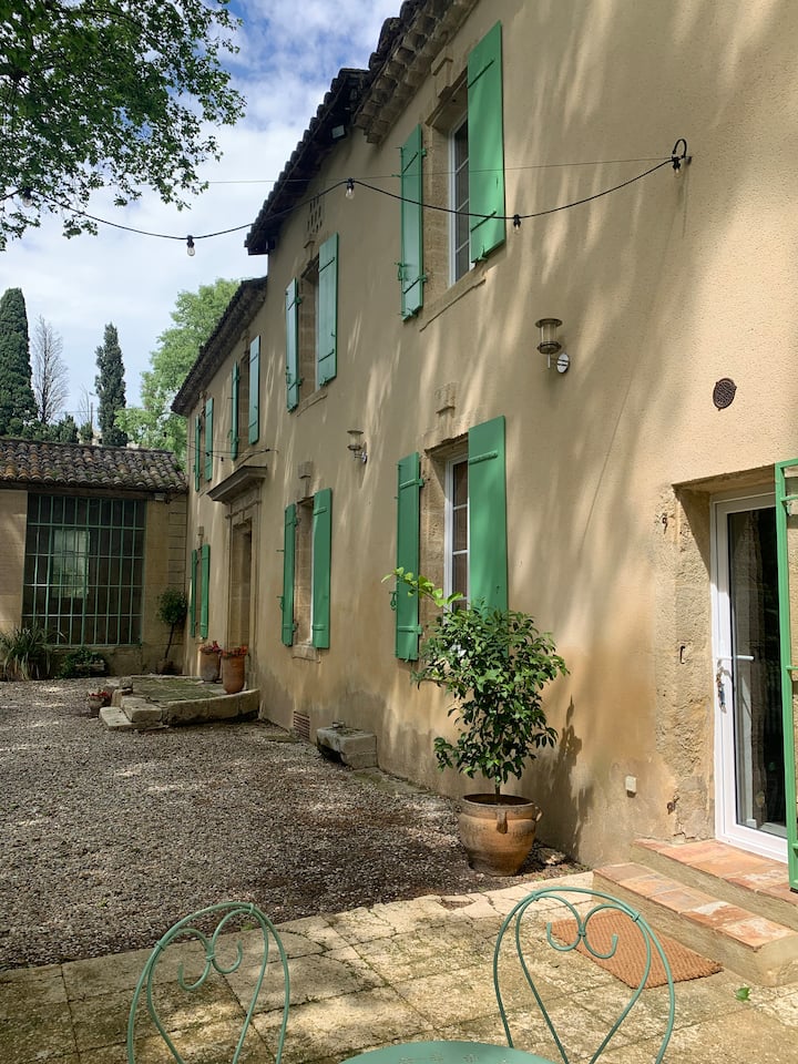 Antigua magnanería renovada en el corazón de un parque arbolado. A1 km el pueblo medieval de Saint Bonnet du Gard para visitar.