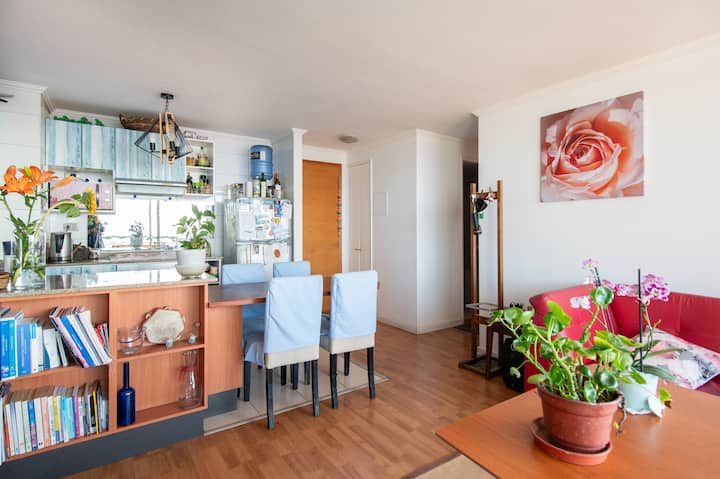 Me llamo Pilar, me encanta recibir huésped, en especial de otros países, porque así conozco otras culturas y les informo de la cultura chilena y la de Valparaiso. El departamento es especial para descansar,estudiar, trabajar. Está muy cerca de Univ. Federico Sta. María. Puedes ocupar la terraza. La cocina está disponible. Intento apoyar y orientar a mis huéspedes en lo me soliciten. Cuento con un grupo de amigos que también pueden apoyarlos.