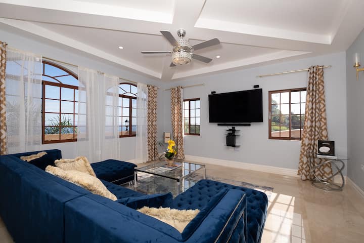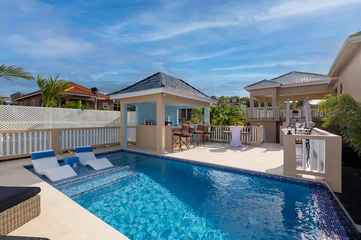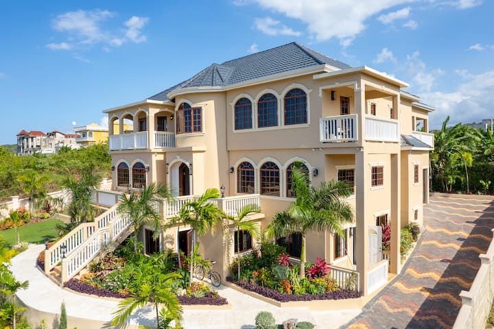 Escápate a Villa Deluxe Paradise, una lujosa villa de 4 dormitorios en Discovery Bay, Jamaica. Perfecto para familias, parejas y grupos, este sereno refugio en la cima de una colina ofrece impresionantes vistas al mar, una piscina infinita privada y acceso a la playa de Puerto Seco. Disfruta de comodidades de primera clase, como un chef privado, un mayordomo y servicio de limpieza. Relájate en la terraza bañada por el sol o disfruta del entretenimiento, el spa, el cine y los jardines tropicales. A solo 40 minutos del aeropuerto de Montego Bay, ¡las vacaciones de tus sueños te esperan!