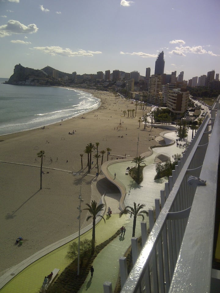 En primera línea de la Playa de Poniente, situado en una 9ª planta ofrece espectaculares vistas a la playa y al precioso paseo.