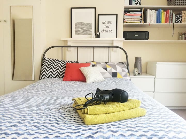 Una habitación solo para ti en un alojamiento, con acceso a áreas compartidas.