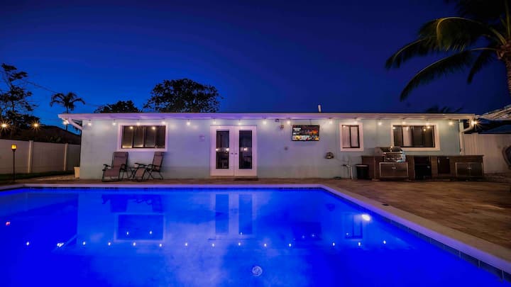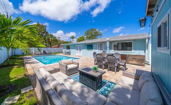 ¡Oasis de chapuzones y bebidas! Piscina climatizada a minutos de la playa