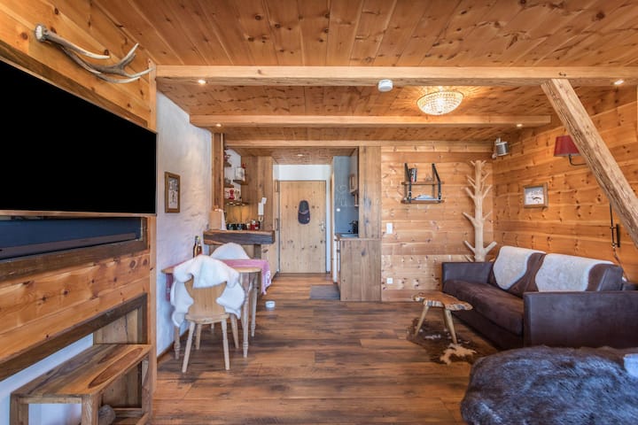 Descanso alpino en el chalet de madera de pino cembro