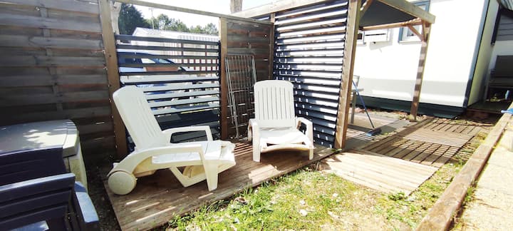 Cabaña de madera en camping 4 estrellas