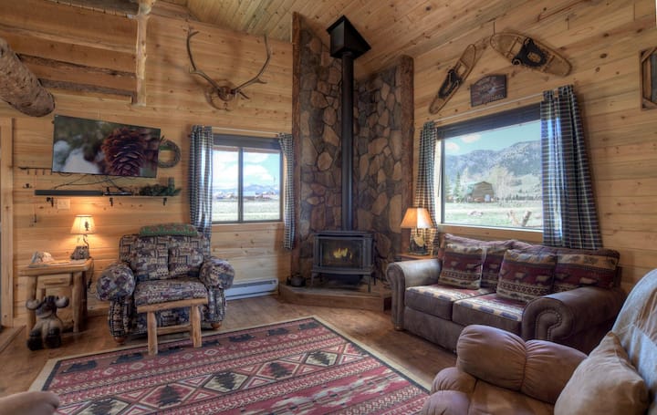 Acogedora cabaña de madera con vistas a la montaña y acceso para vehículos todoterreno