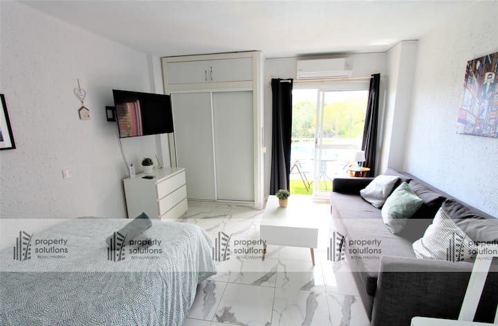 Júpiter estudio. Vista al jardín y la piscina. 127