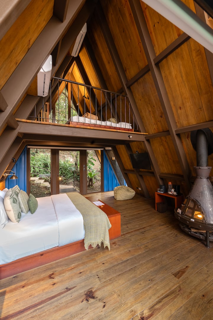 Linda cabaña con jacuzzi y fogatera
