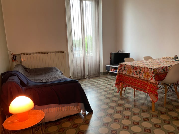Hola, soy Simona y trabajo como productora de video. Vivo en Bovisa desde 2018, en mi apartamento con Bruno, un perro de tamaño medio. A menudo estoy fuera por trabajo y los fines de semana, así que dejo mi apartamento a los que pasan por Milán y necesito un lugar cómodo para alojarme, lejos del caos y el tráfico del centro.