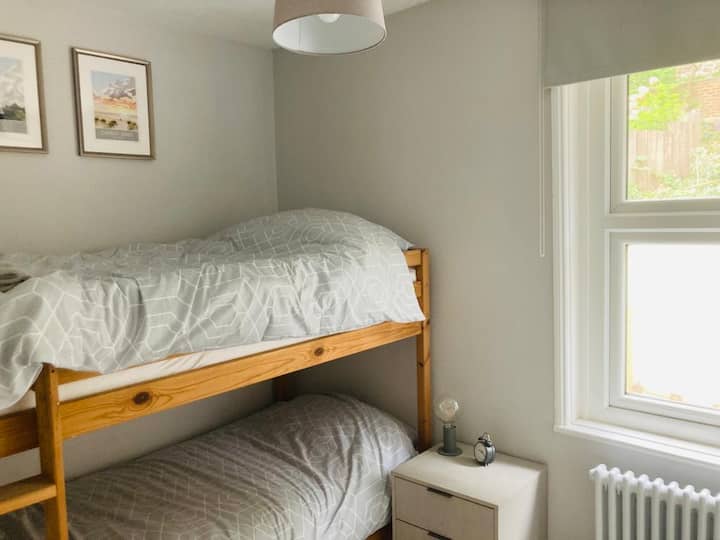 Casa victoriana de 2 dormitorios con aparcamiento y jardín.